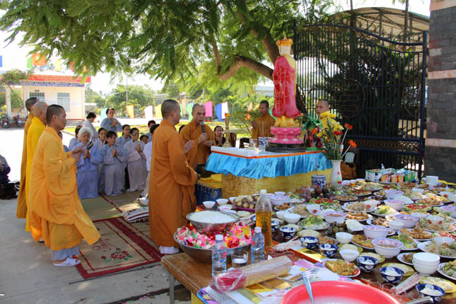 Không chỉ quan tâm đến đời sống cho những người sống tại trung tâm, BTS GHPGVN quận Liên Chiểu còn tổ chức lễ cúng thí thực tại Trung tâm điều dưỡng bệnh nhân tâm thần để nguyện cầu cho âm siêu dương thái trong mùa Vu Lan Báo Hiếu.