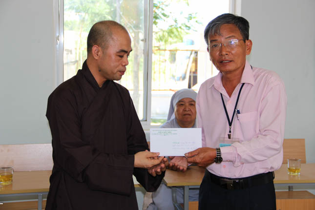 Cũng trong chiều hôm nay, ĐĐ. Thích Chúc Tín cùng Chư Tăng, đạo hữu Phật tử chùa Bát Nhã (176 Triệu Nữ Vương, Tp Đà Nẵng) đã trao tặng Trung tâm điều dưỡng bệnh nhân tâm thần Tp Đà Nẵng 15 triệu đồng và Trung tâm Bảo trợ xã hội Tp Đà Nẵng 10 triệu đồng để hổ trợ thêm vào quỹ chăm lo đời sống cho những người đang nương tựa tại trung tâm.