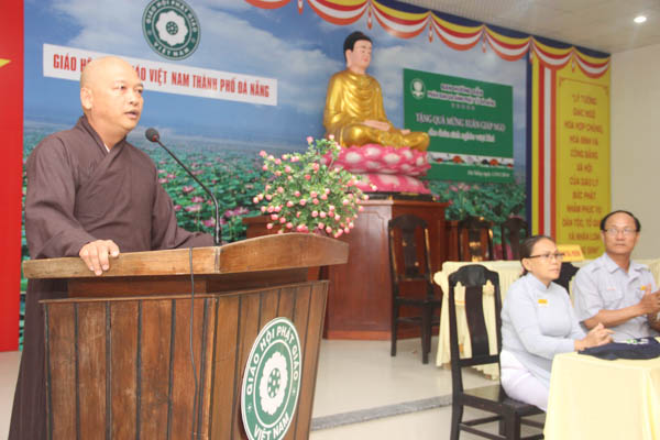 Trong lời phát biểu khai mạc, Htr cấp Dũng Thị Sơn Huỳnh Ngọc Lâm đã nói lên tinh thần tương thân tương ái của dân tộc Việt Nam nói chung và của tổ chức GĐPT nói riêng. Tuy giá trị phần quà không lớn nhưng đó là tất cả tấm lòng của các nhà mạnh thường quân, của các anh chị em áo lam đã đóng góp để giúp cho các đoàn sinh có hoàn cảnh khó khăn có thêm một chút hương vị xuân trong ngày tết cổ truyền của dân tộc. Anh cũng đã thay mặt BHD PB GĐPT Đà Nẵng gửi lời cảm ơn sâu sắc đến chư Tôn đức Tăng Ni, các nhà mạnh thường quân đã hổ trợ tịnh tài, tịnh vật để PB GĐPT Đà Nẵng tổ chức tặng quà tết cho các đoàn sinh.
