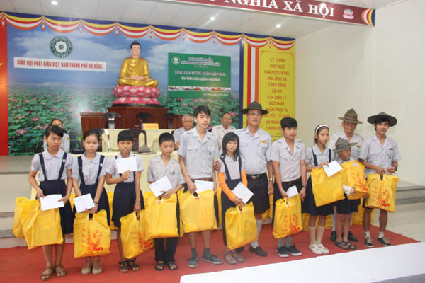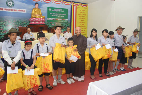 120 đoàn sinh nhận quà tết trong dịp này đến từ các đơn vị GĐPT trên địa bàn Tp Đà Nẵng do BHT các đơn vị xem xét và giới thiệu lên. Mỗi phần quà bao gồm tịnh tài và tịnh vật trị giá 350.000đ/phần.
