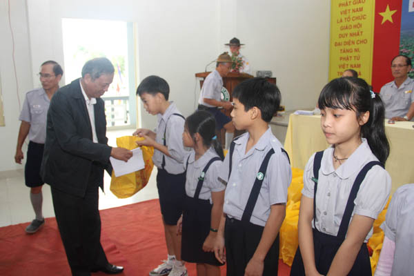Cũng tại buổi lễ, Htr cấp Tấn Tâm Lập Lê Hà Thọ, Htr cấp Tấn Nguyên Chương Trần Duy Lam và Htr cấp Tín Diệu Khai Lê Thị Quỳnh Hoa đã tặng những phần quà của cá nhân các anh chị đến các Htr và đoàn sinh có hoàn cảnh khó khăn