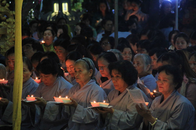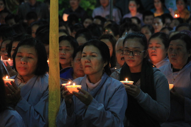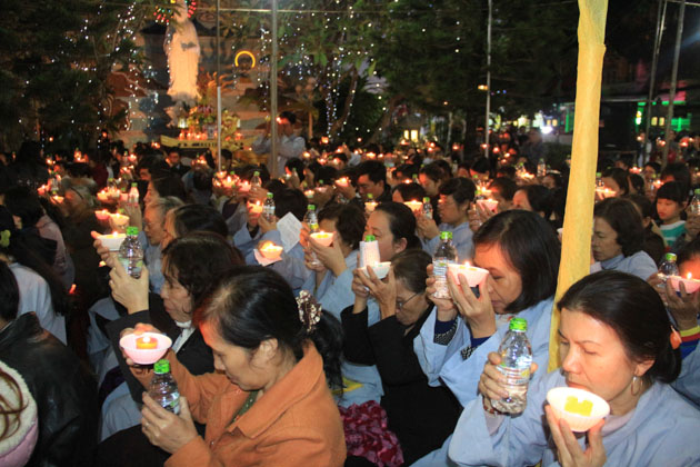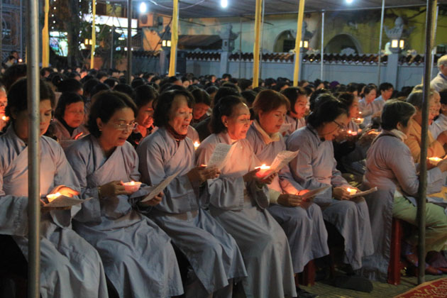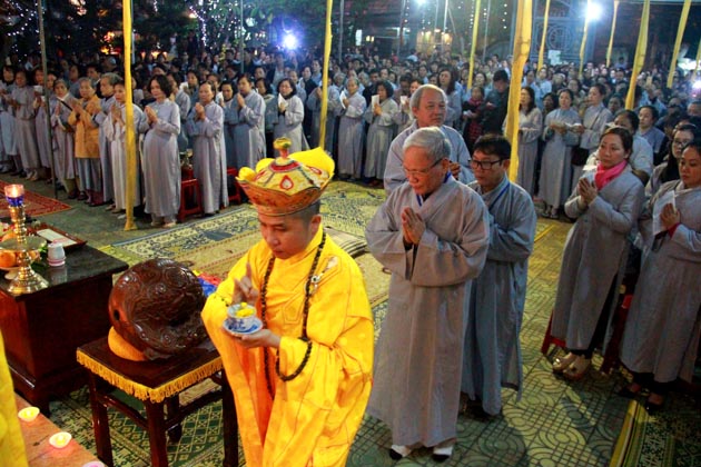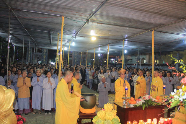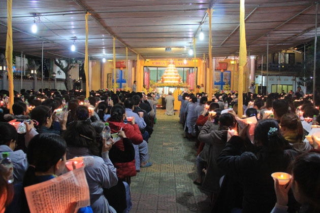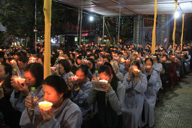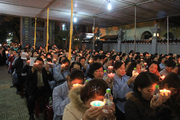 Trong đêm 18/01, hàng ngàn ngọn nến lung linh đã thắp sáng sân chùa Tân Ninh dâng lên ngôi Tam Bảo lời nguyện cầu Quốc thái dân an, chúng sanh an lạc, nhà nhà ấm no hạnh phúc.