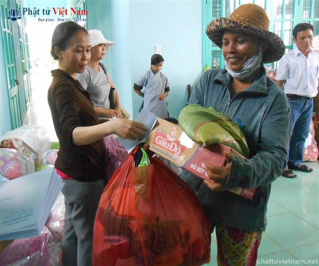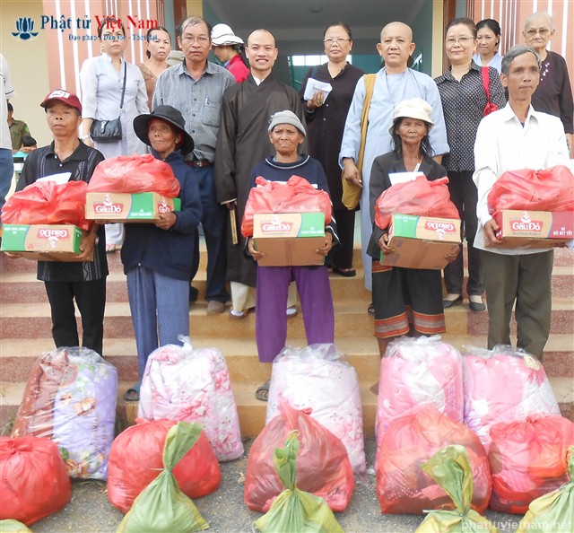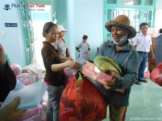 Đoàn đã tặng các hộ nghèo nhiều thực phẩm thiết yếu, quần áo, chăn bông, gạo sấy, Mì ăn liền và tiền mặt mỗi suất trị giá 800 ngàn đồng.