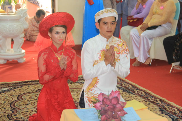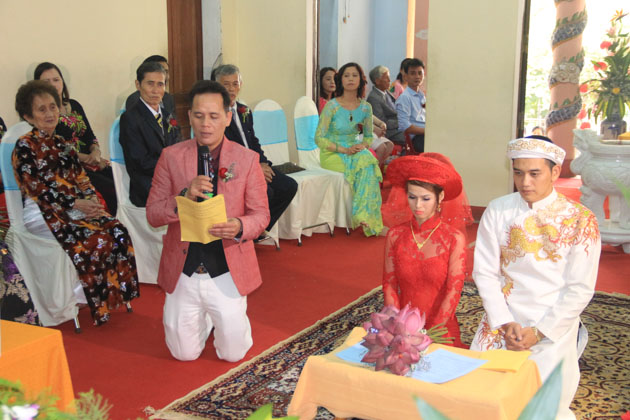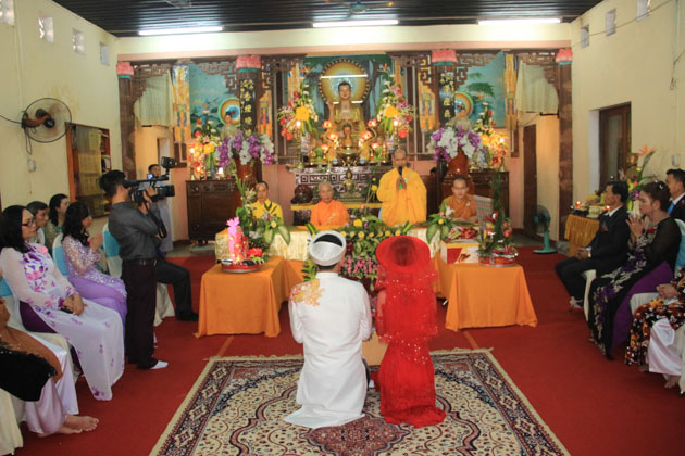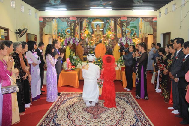 Với niềm hân hoan trong ngày trọng đại của cuộc đời, đôi tân lang tân nương đã thành kính dâng lời phát nguyện trước ngôi Tam Bảo, phát nguyện trọn đời nương theo giáo lý Phật Đà để làm hành trang cho cuộc sống sau này.
