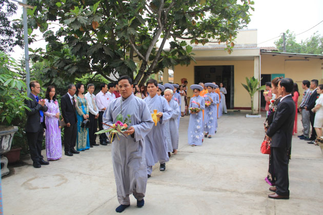 Tham dự buổi lễ có đông đủ bà con hai họ, thân bằng quyến thuộc cùng các đạo hữu Phật tử chùa Hòa Thọ.