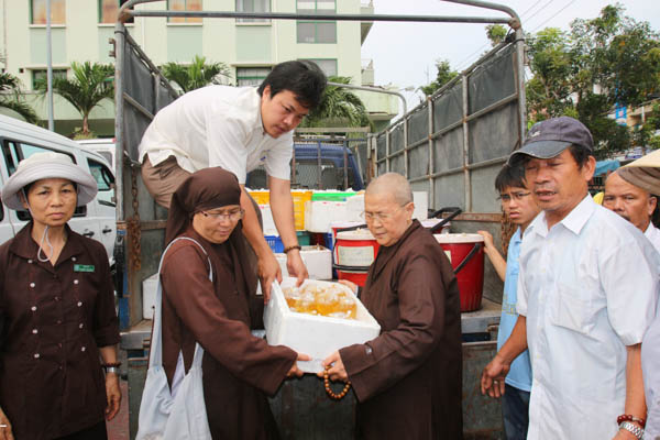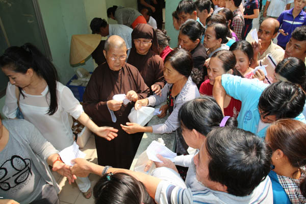 Sáng nay, ngày 20/03/2015 (01/02/Ất Mùi), NS. Thích Nữ Hạnh Tâm, SC. Thích Nữ Minh Hiền cùng đạo hữu Phật tử đã phát 650 suất bún chay cho các bênh nhân đang điều trị tại bệnh viện Đà Nẵng. Ngay sau đó, đoàn cũng đã đến thăm và tặng quà cho các bệnh nhân có hoàn cảnh khó khăn tại bệnh viện, đồng thời ghé thăm và tặng quà cho một số trường hợp khó khăn trên địa bàn Tp Đà Nẵng.