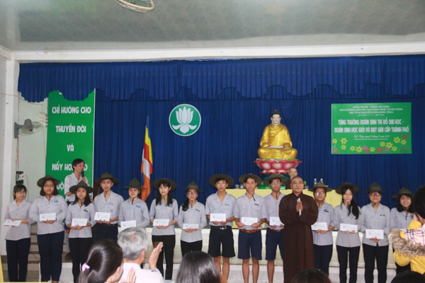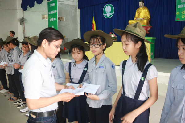 Cũng chung tay với ĐĐ. Thích Thông Đạo có ĐĐ. Thích Đồng Nghĩa – UV BTS GHPGVN Tp Đà Nẵng, Trú trì chùa An Long; BHD PB GĐPT Đà Nẵng và Đội TNV máu sống. Tổng cộng có 213 em đoàn sinh được tặng thưởng trong dịp này với tổng số tiền hơn 70 triệu đồng.