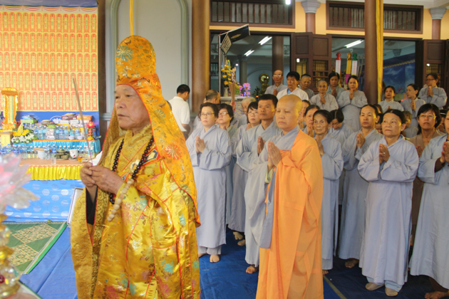 Sư cô Thích Nữ Diệu Tín – Trú trì chùa Phục Đán đã cung thỉnh HT. Thích Chí Mãn – UV H ĐTS GHPGVN, Phó BTS kiêm Trưởng ban Tăng sự GHPGVN Tp Đà Nẵng quang lâm chứng minh đại lễ; TT. Thích Minh Thành – Trưởng ban nghi lễ GHPGVN Tp Đà Nẵng và ĐĐ. Thích Nghiêm Quảng – Giám tự chùa Diệu Pháp đương vi sám chủ đàn tràng; ĐĐ. Thích Huệ Chấn – Trưởng BTS GHPGVN huyện Hòa Vang đương vi pháp sư cùng Chư Đại đức Tăng ban kinh sư.