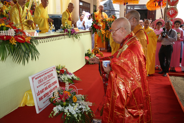 HT. Thích Thiện Toàn đã thay mặt Chư Tôn giáo phẩm chứng minh ban đạo từ sách tấn Đại đức Trú trì cùng Tăng chúng, đạo hữu Phật tử chùa Tân Thành đã phát đại nguyện xây dựng ngôi Tam Bảo đồng thười mong muốn sự phát tâm hộ trì của thập phương thiện tín để ngôi Đại hùng bửu điện chùa Tân Thành sớm thành tựu.