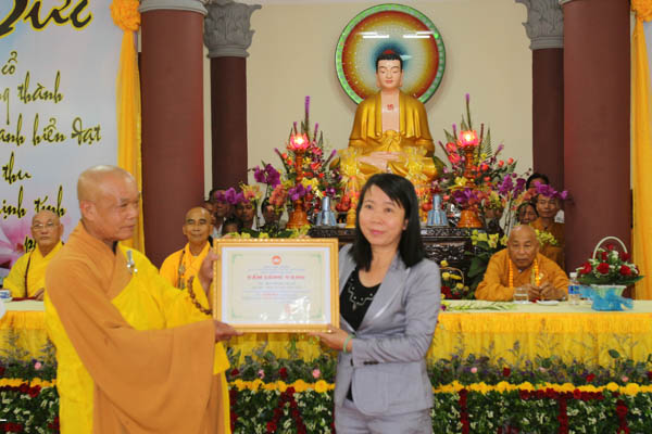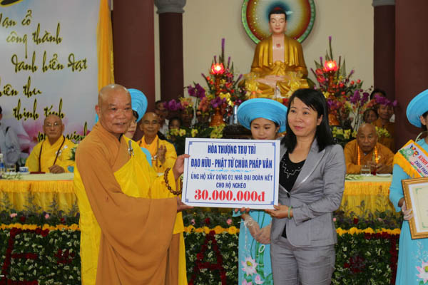 Cũng tại buổi lễ, HT. Thích Chí Mãn đã trao tặng 30 triệu đồng ủng hộ xây dựng nhà đại đoàn kết cho người nghèo tại địa phương.