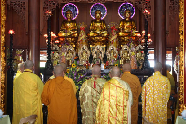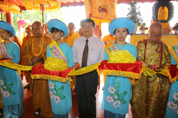 Chư Tôn đức và đại biểu chính quyền đã hân hoan cắt băng khánh thành, dâng hương lễ Phật. Sau đó là lễ Trai Tăng cúng dường, lễ chẩn tế cô hồn để cầu quốc thái dân an.
