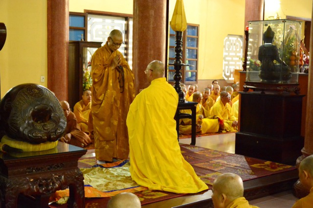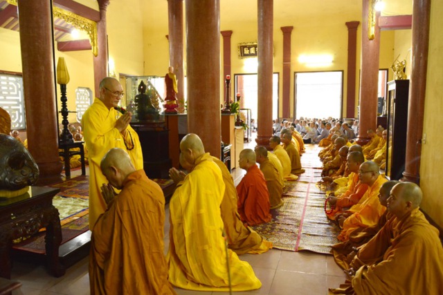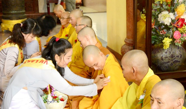 Cũng nhân ngày Tự Tứ hoan hỷ, Đạo tràng Phật tử mà đại diện là Đoàn Thiện Sanh đã dâng Tứ Sự cúng dường lên chư Tôn đức khánh chúc quý ngài thêm một tuổi hạ.