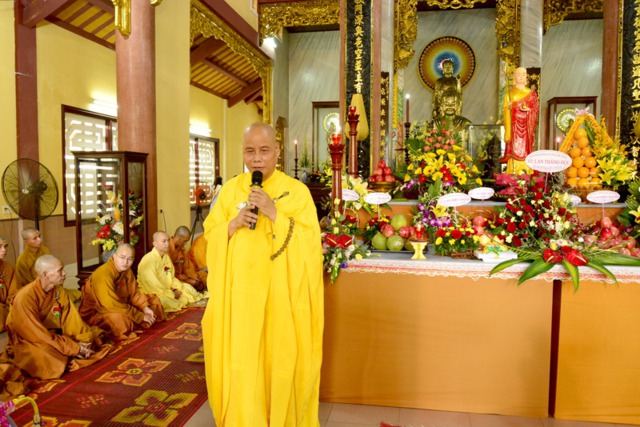 T T Thích Thiện Toàn thay mặt chư Tôn đức hành giả An cư có lời phát biểu tán dương công đức các Phật tử, cư sỹ tại gia đã hộ trì cúng dường tịnh tài, tịnh vật cho ba tháng an cư của Chư Tôn đức góp phần rât lớn để mùa an cư năm nay được thành tựu
