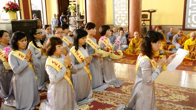 Mừng ngày Đại Lễ Vu Lan, mùa báo hiếu các Phật tử đã trân trọng dâng hoa cúng dường và cài đóa hoa tinh khôi thể hiện tấm lòng tri ân của người Phật tử đối với công lao hướng dẫn, dìu dắt trên bước đường tu học của chư Tôn đức trong thời gian qua.