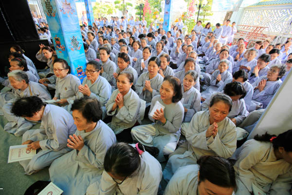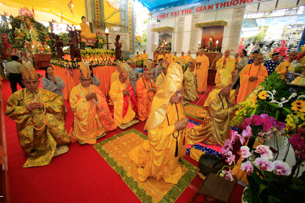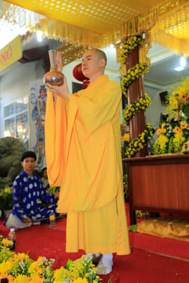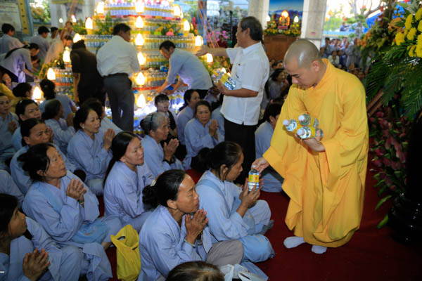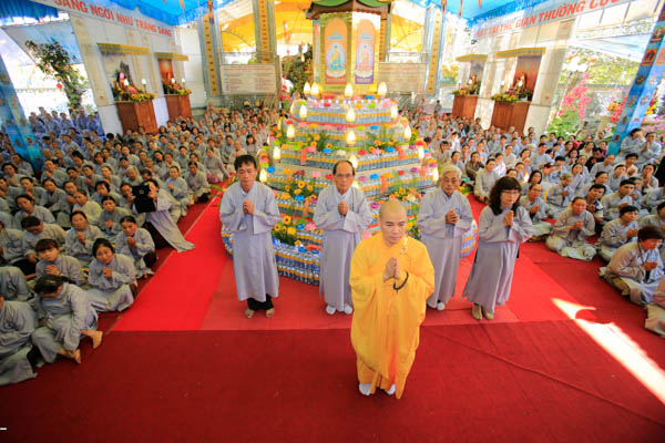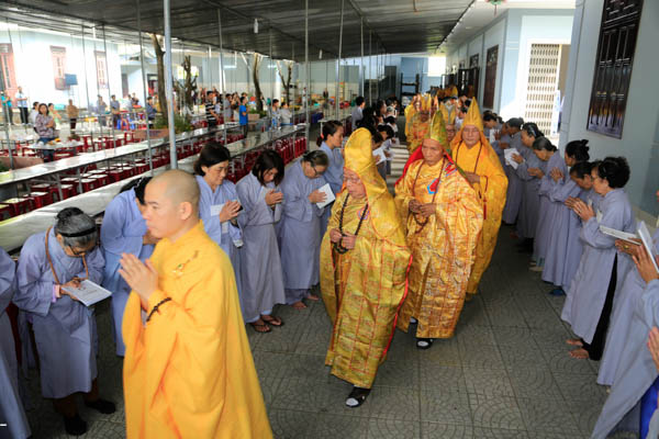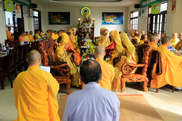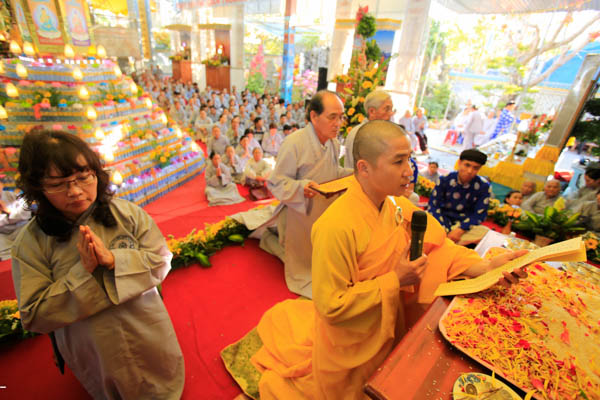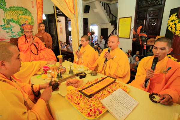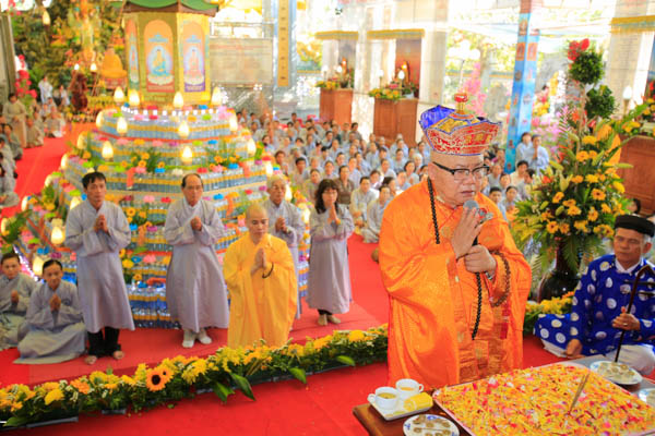 Nhờ oai lực của chư Phật và sức lực chú nguyện của Chư Tôn Đức mà khắp nơi thành thị đến nông thôn, mọi giới biết noi theo đường tu tập. Gió hòa mưa thuận, đất nước bình an. Lại nguyện xin thổi ngọn gió từ bi thanh lương vào thế gian nóng bức, đem mặt trời trí tuệ về ngự giữa không gian âm u, để mong tật bịnh nghiệp chướng được tiêu trừ, sở cầu sở nguyện giai như ý, cửu huyền thất tổ sớm siêu thăng, bát nạn tam đồ đều giải thoát …”