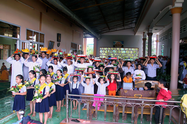 Và vào lúc 13h30 cùng ngày là buổi sinh hoạt hái hoa giáo lý với chủ đề Rung chuông chùa.