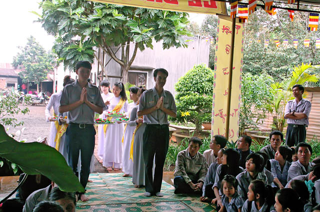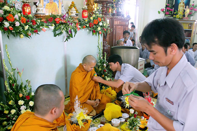 Mặc dù ảnh hưởng của cơn bão số 7 thời tiết không được thuận lợi, nhưng từ sáng sớm Phật tử gần xa cùng anh chị em G.Đ.P.T đã đội mưa đến với lễ dâng Pháp y có những đơn vị đi bằng xe Công nông vượt hơn 20km như G.Đ.P.T linh ứng,G.Đ.P.T Quảng nguyên.