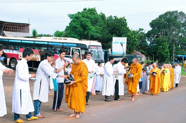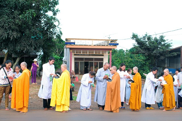 Tham dự và chứng minh buổi lễ có ĐĐ. Thích Giác Hoàng, ĐĐ. Thích Giác Không, Ni sư Thích Nữ Cảnh Liên, Sư cô Thích Nữ Hiếu Liên – Trú trì tịnh xá Ngọc Chánh cùng chư ni và đông đảo bà con Phật tử khắp nơi trên địa bàn huyện đã hoan hỷ vân tập, thành kính dâng y và cúng dường với chí nguyện đền đáp Tứ ân.