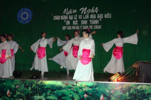 Các tiết mục,ca khúc được các huynh đệ thể hiện vui tươi và rất xúc động.Đã phần nào làm tăng thêm lòng tôn kính,yêu thương: Tam Bảo,công ơn cha mẹ và tình yêu quê hương đất nước nhân ngày báo ân.