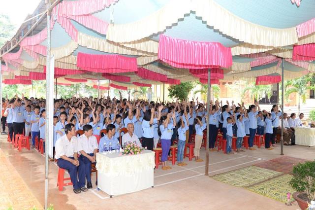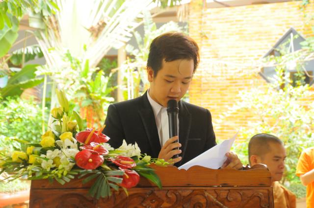 Em Trần Thị Như Ý đại diện các bạn tu sinh đọc lời phát nguyện: “Hôm nay, chúng con rất vui mừng được thay mặt cho hơn 300 bạn khóa sinh lớp tu học đạo đức Phật pháp mùa hè 2016 được tổ chức tại chùa Liên Trì – thành phố Buôn Ma Thuột, con xin được phát biểu đôi lời như sau: Lời đầu tiên, chúng con xin thành kính tri ân thầy trụ trì cùng tất cả quý thầy, quý sư cô dành thời gian, quan tâm dạy dỗ chúng con trong khóa tu. Nhờ sự quan tâm của tất cả quý vị mà hôm nay chúng con được trở về tham dự khóa tu này để tăng trưởng kiến thức về nhân văn gắn liền với truyền thống đạo đức của dân tộc, đồng thời có thể cảm nhận thêm được tấm lòng hiếu kính cha mẹ, thầy cô”.