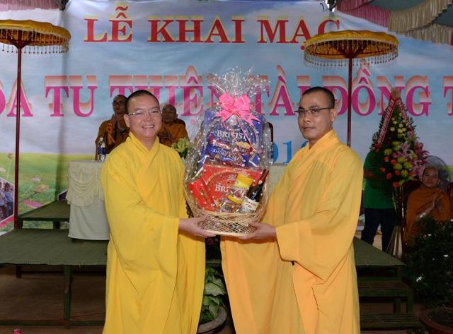 Buổi lễ khai khóa kết thúc trong tinh thần hòa hợp, đoàn kết bằng những lẵng hoa và quà chúc mừng khóa tu. Hy vọng hơn 300 bạn trẻ sẽ có những ngày hè thật bổ ích, thật năng động và nhiều kỷ niệm bên thầy cô, bạn bè.