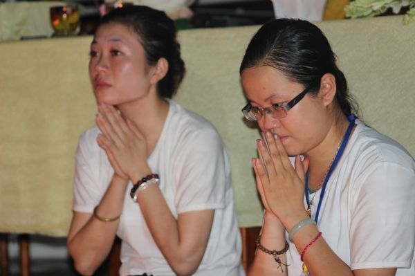 Đêm xuống, tình nguyện viên phải thức để canh cho các em ngủ, vì sợ núi rừng hiểm trở, các em ham chơi. Nếu có khóa sinh nào đau ốm, lập tức tình nguyện viên sẽ phải giải quyết và lo lắng cho các em. Những đêm trời mưa gió, tình nguyện viên là người đứng bốn gốc làm trụ, căng bạt che cho khóa sinh đi ăn, đi đốt nến tri ân… Mỗi lần như thế, quý thầy cô và tình nguyện viên sẽ phải đi đầu, rọi đèn pin, chiếu sáng để tránh nguy hiểm cho các em, vì giữa núi rừng có nhiều rắn, rết, bò cạp,… Thương nhất là những trận mưa to, kéo dài, các bạn mới thay bộ đồ ướt này xong, lập tức lại phải mang bộ đồ ướt khác để phải giải quyết công việc cho BTC và khóa sinh. Hầu như tất cả những công việc nặng nhọc, vất vả của khóa tu, tình nguyện viên đều đảm nhận hết. Nhiều lúc buồn ngủ lắm, nhiều lúc đòi bụng lắm, nhiều lúc mệt mõi lắm,… nhưng đối trước khóa sinh, tình nguyện viên bao giờ cũng khỏe, cũng no và chẳng bao giờ thiếu ngủ.