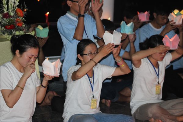 Không biết vô tình hay cố ý, mà màu áo tình nguyện năm nay ĐĐ. Thích Hải Trung, trưởng ban tổ chức khóa tu lại chọn cho các bạn tình nguyện viên màu áo trắng tinh khôi. Màu của sự trắng trong, nhiệt huyết, luôn hy sinh và không hề toan tính. Màu áo ấy được các bạn khoác lên mình, đẹp tinh khôi, tựa như ánh trăng rằm mười sáu, như trái tim thơ ngây và tấm lòng mộ đạo thuở mới tìm thấy ánh sáng Phật đà. Thế nên, dẫu là đi bộ mỗi ngày rất nhiều cây số, dẫu là xếp hơn cả 3000 ngọn đăng, dẫu  phải nhịn đói vì thiếu cơm,… nhưng sự dấn thân, lòng yêu thương các em khóa sinh, sự kính trọng quý thầy cô và lòng tôn kính đối với Tam Bảo đã giúp các bạn luôn nở những nụ cười hoan hỷ. Chính điều này đã tạo nên sự thành công và ấn tượng cho khóa tu. Thiện Tài Đồng Tử đã tổ chức được IV lần, nhưng có lẻ đây là lần đặc biệt nhất, để lại ấn tượng nhiều nhất. Niềm vui xen lẫn những nỗi buồn, sự nguy hiểm xem lẫn với bình an,… Tất cả đã làm nên một khóa tu đầy ý nghĩa.