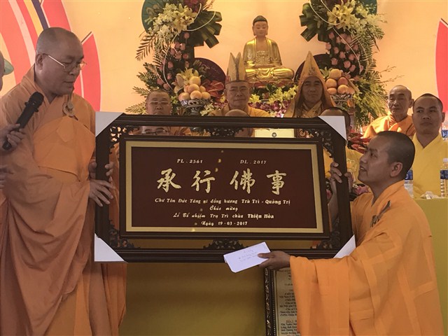 Buổi lễ nhận được nhiều lẵng hoa và quà chúc mừng của các ban ngành đoàn thể, chính quyền, đảng uỷ, UBND, UBMTTQVN các cấp và địa phương, các huynh đệ đồng môn và phật tử khắp nơi gửi tặng chúc mừng đại đức Thích Quảng Nguyện đăng lâm trụ trì niệm Phật đường Thiện Hoà kiêm Phó Ban Thường Trực GHPGVN Huyện Krông Buk, tỉnh Đắc Lăk.