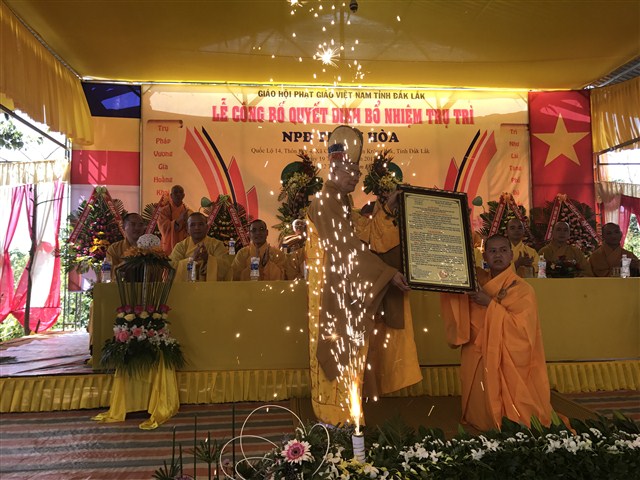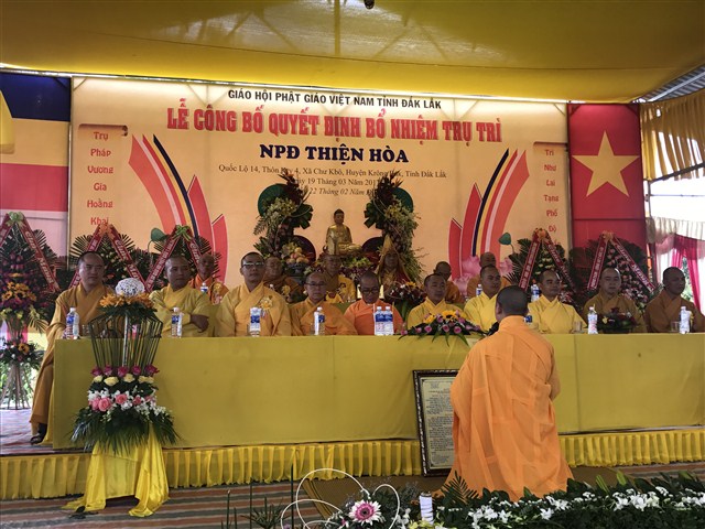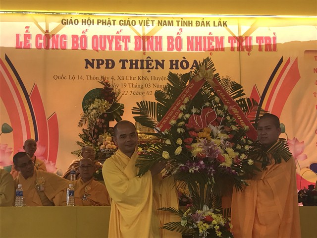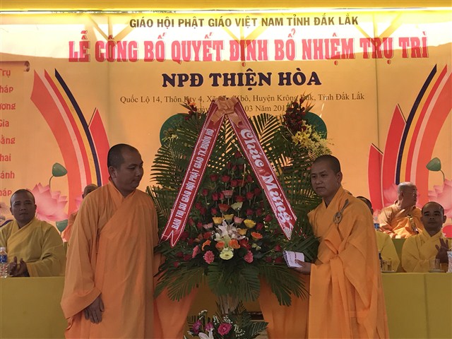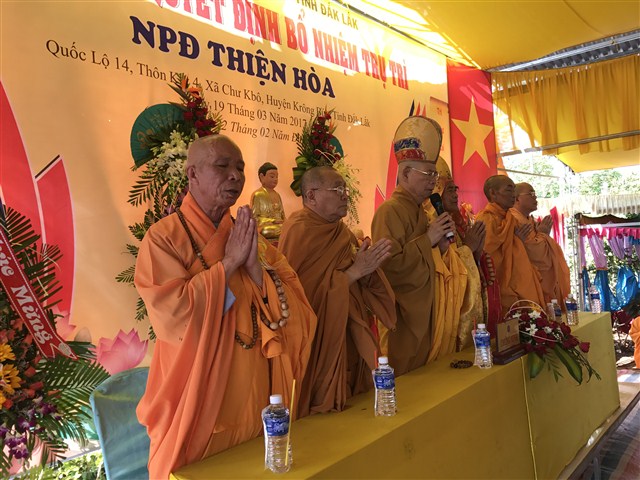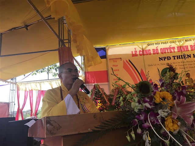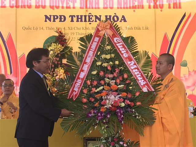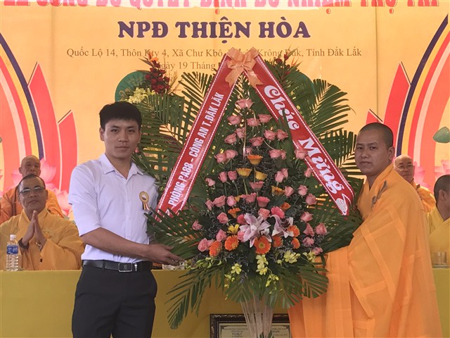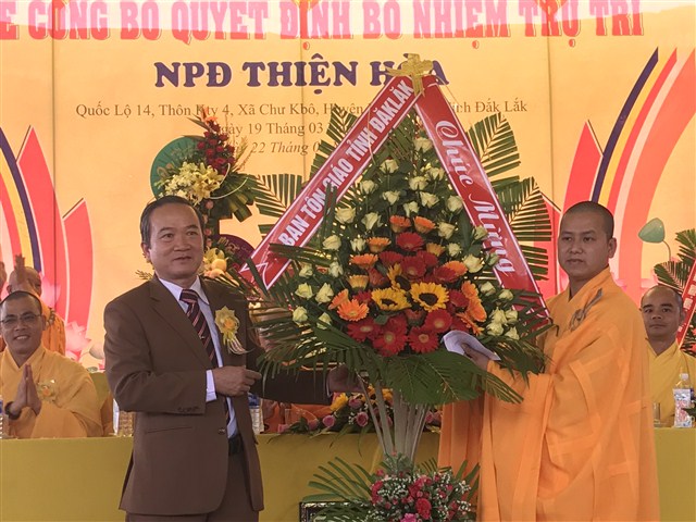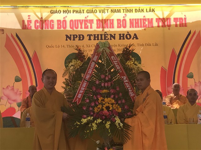 “ Hôm nay, niềm vui càng được nhân lên khi NPĐ Thiện Hoà được công được công bố quyết định bổ nhiệm trụ trì là đại đức Thích Quảng Nguyện. NPĐ Thiện Hoà ngày càng phát triển và đang trở thành trung tâm Phật giáo của huyện Krông Buk, góp phần xây nên ngôi nhà Phật giáo Việt Nam vững bền”- phó chủ tịch huyện khẳng định.