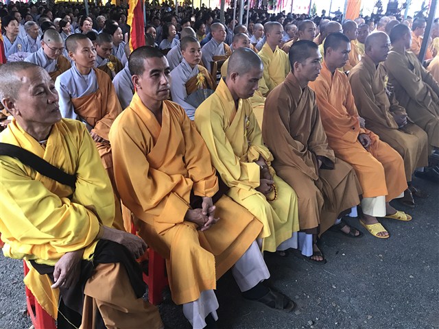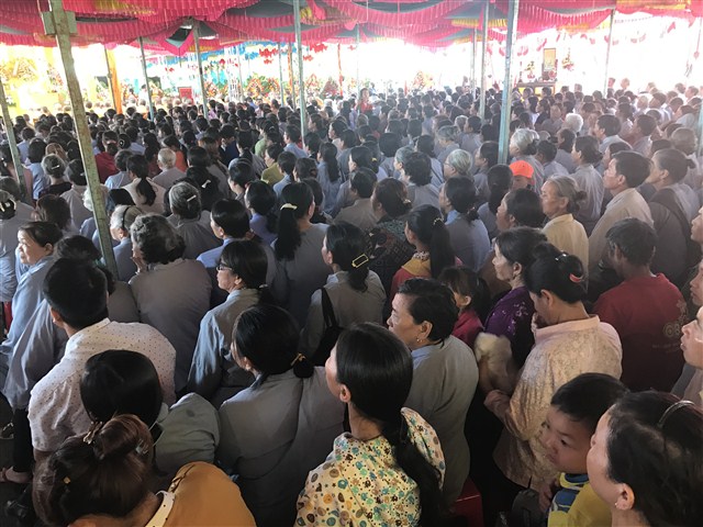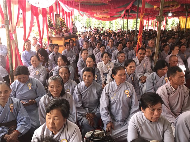 Theo đó, phật tử Nguyễn Văn Tự, pháp danh Nhuận Giác, đại diện Phật tử NPĐ Thiện Hoà dâng lời cảm niệm: “Thầy (Thích Quảng Nguyện– PV) cùng Phật tử ban đầu với hai bàn tay trắng, bao nhiêu vất vả cực nhọc, những suy nghĩ lo toan làm nhiều đêm thầy không ngủ được. Những câu cứ chập chờn trong đầu thầy làm thế nào để xây dựng được một ngôi tam bảo, đề bà con phật tử có nơi để tu tập, tụng kinh, niệm Phật. Thầy con suy nghĩ rất nhiều, xây dựng ở đâu, đất đai thế nào, khi mua được đất ban đầu rồi đường đồi lại lao dốc, đi lại vất vả, xây dựng rồi thì có phật tử đến tu học hay không, khó khăn lại chồng chất khó khăn…” Những lời phát biểu chân thành của Phật tử khiến mọi người lắng nghe sâu, nhiều người không kìm nén nỗi xúc động, bùi ngùi.