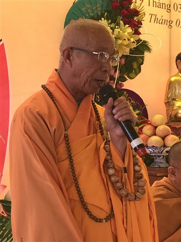 Tiếp đến, HT.Thích Châu Quang – Ủy viên HĐTS TƯ, Trưởng Ban Trị sự GHPGVN tỉnh Đắc Lăk huấn thị đại đức tân trụ trì làm sao phát triển được phong trào tu học Phật pháp, hộ quốc an dân, giữ gìn nếp sống văn minh tiến bộ, thường giữ phạm hạnh của người đệ tử Phật, nêu cao đức tính từ bi hỷ xả, vô ngã, vị tha của Phật giáo.