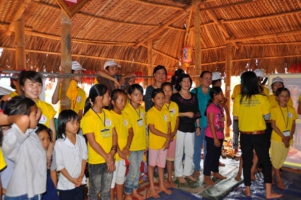 Vào buổi chiều, các em được giao lưu văn nghệ với các anh chị trong câu lạc bộ Thanh niên Phật tử Tp.HCM.