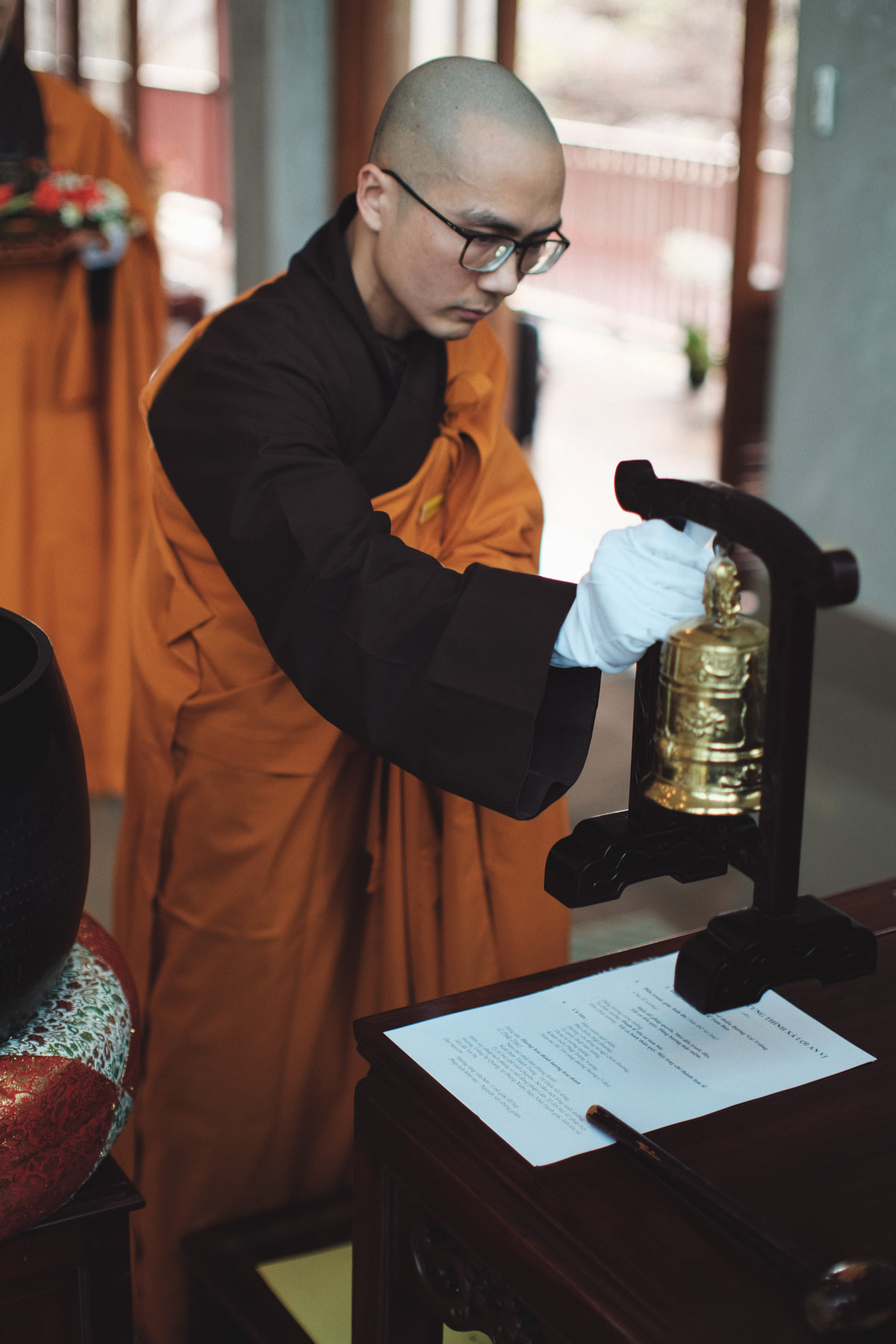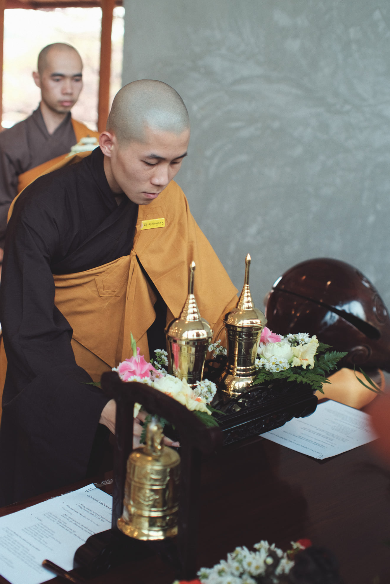 Sau phần Dâng hương, Khai kinh, Đại chúng đã làm lễ An vị Xá lợi lên bàn thờ của Sư Ông. Có mặt cùng Quý thầy, quý sư cô trong buổi lễ, quý vị thiền sinh đã rất xúc động khi sau nhiều ngày mong chờ, Xá lợi của Sư Ông đã về đến Tu viện. Ai nấy đều theo dõi hơi thở, mỉm cười, và gửi năng lượng bình an đến Sư Ông.