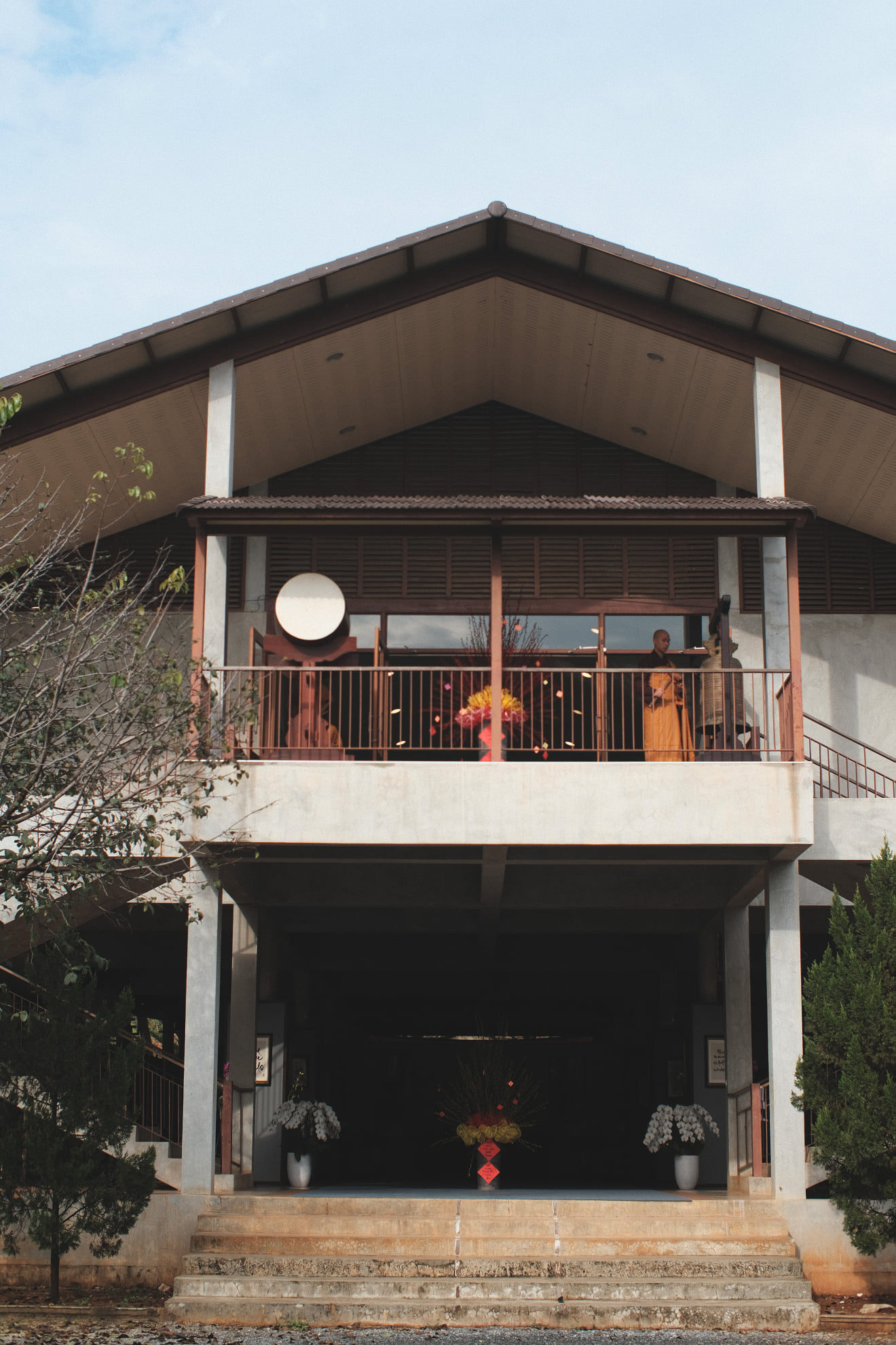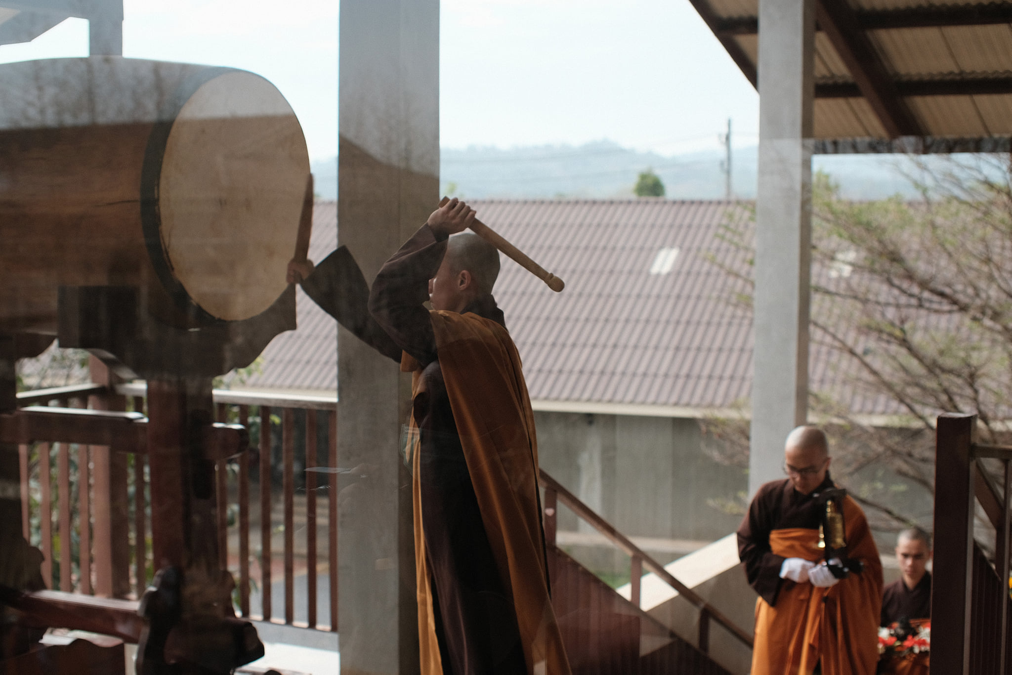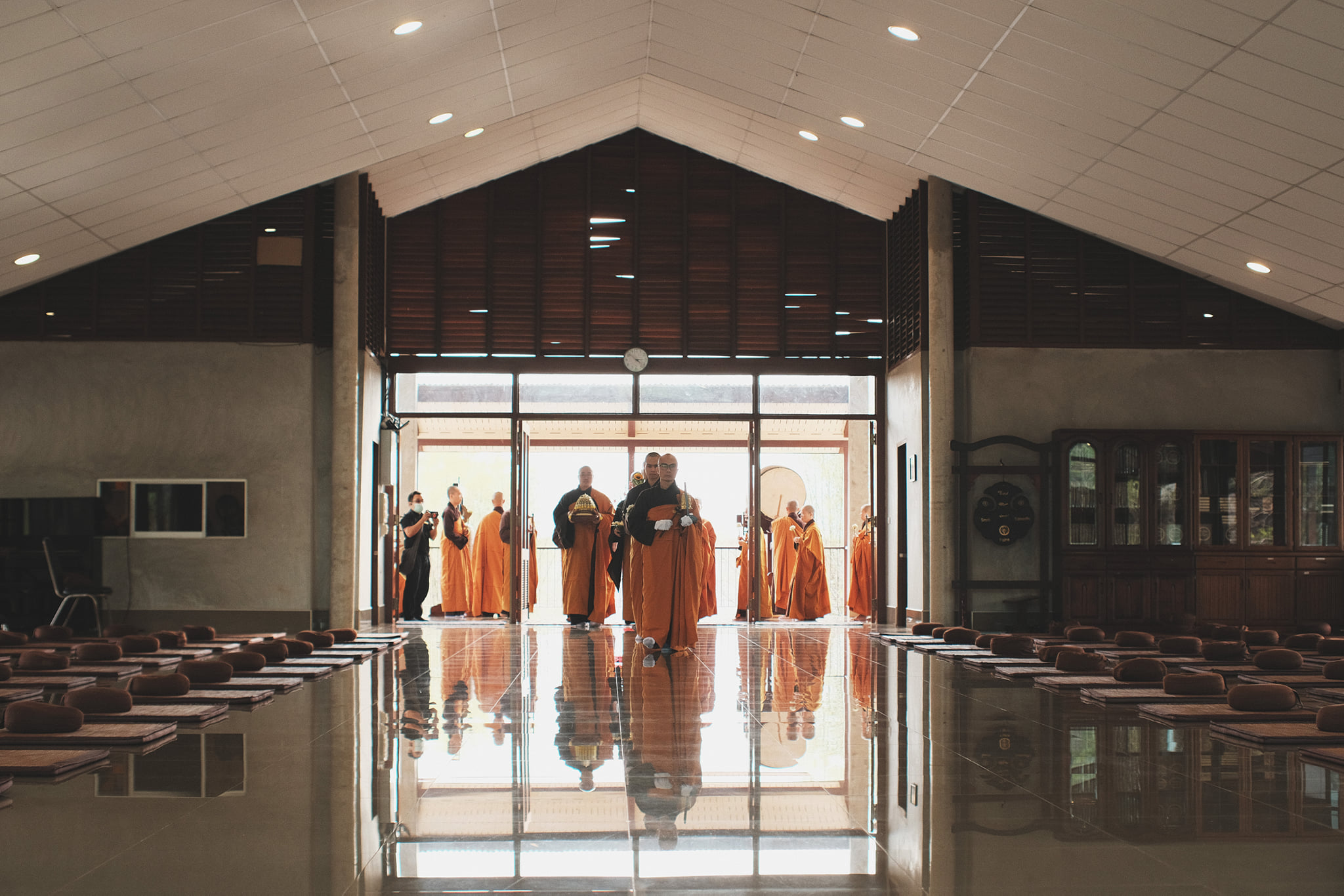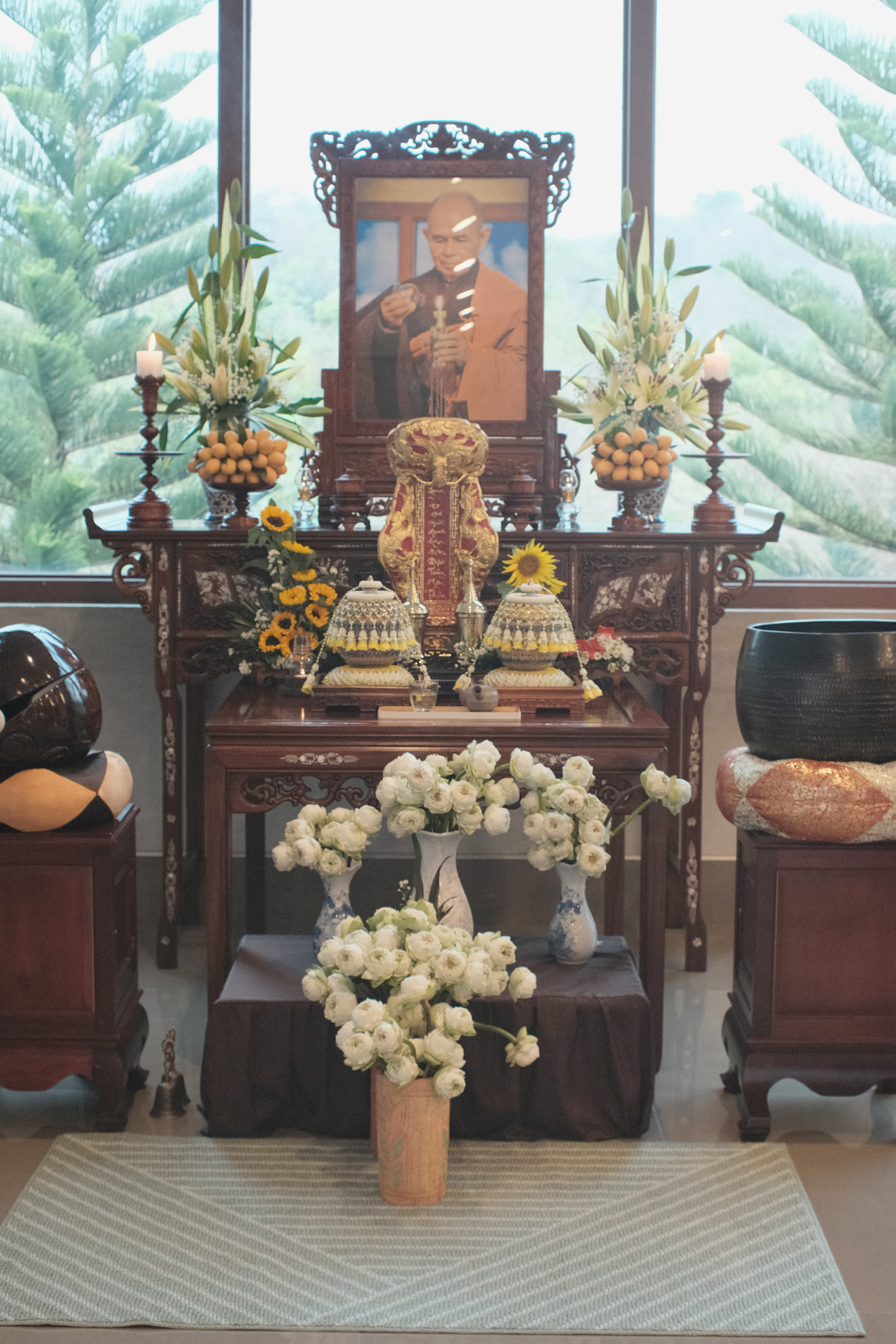 Khi Xá lợi Sư Ông từ Chùa Tổ Từ Hiếu về đến Tu viện, Bốn chúng đã có mặt tại cổng Tu viện, trên tay mỗi người đều có một cành hoa sen trắng, trang nghiêm, và Tăng thân đã cùng bước những bước chân chánh niệm hướng về Thiền đường Voi Trắng, nơi diễn ra buổi lễ Nghinh đón Xá lợi Sư Ông.