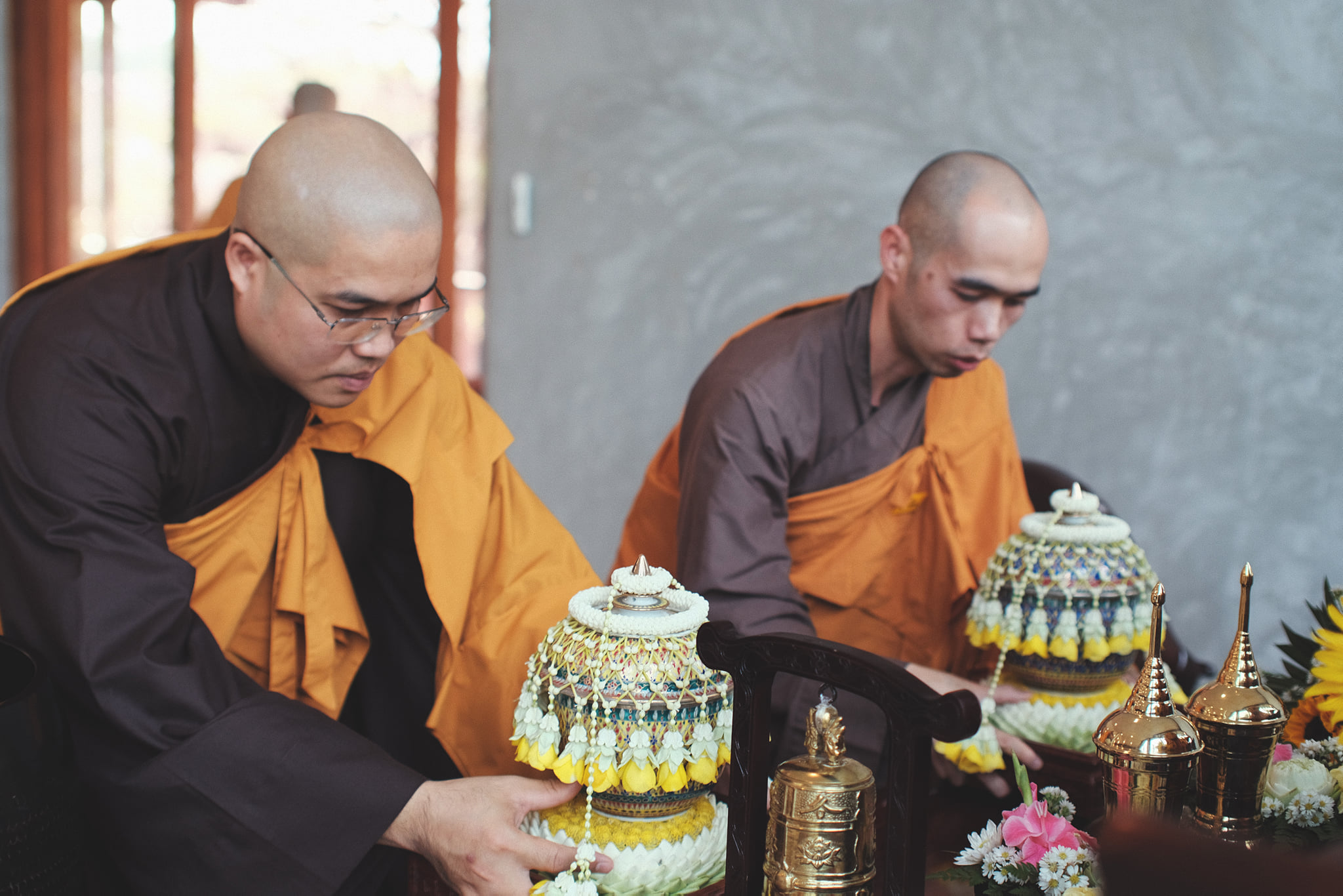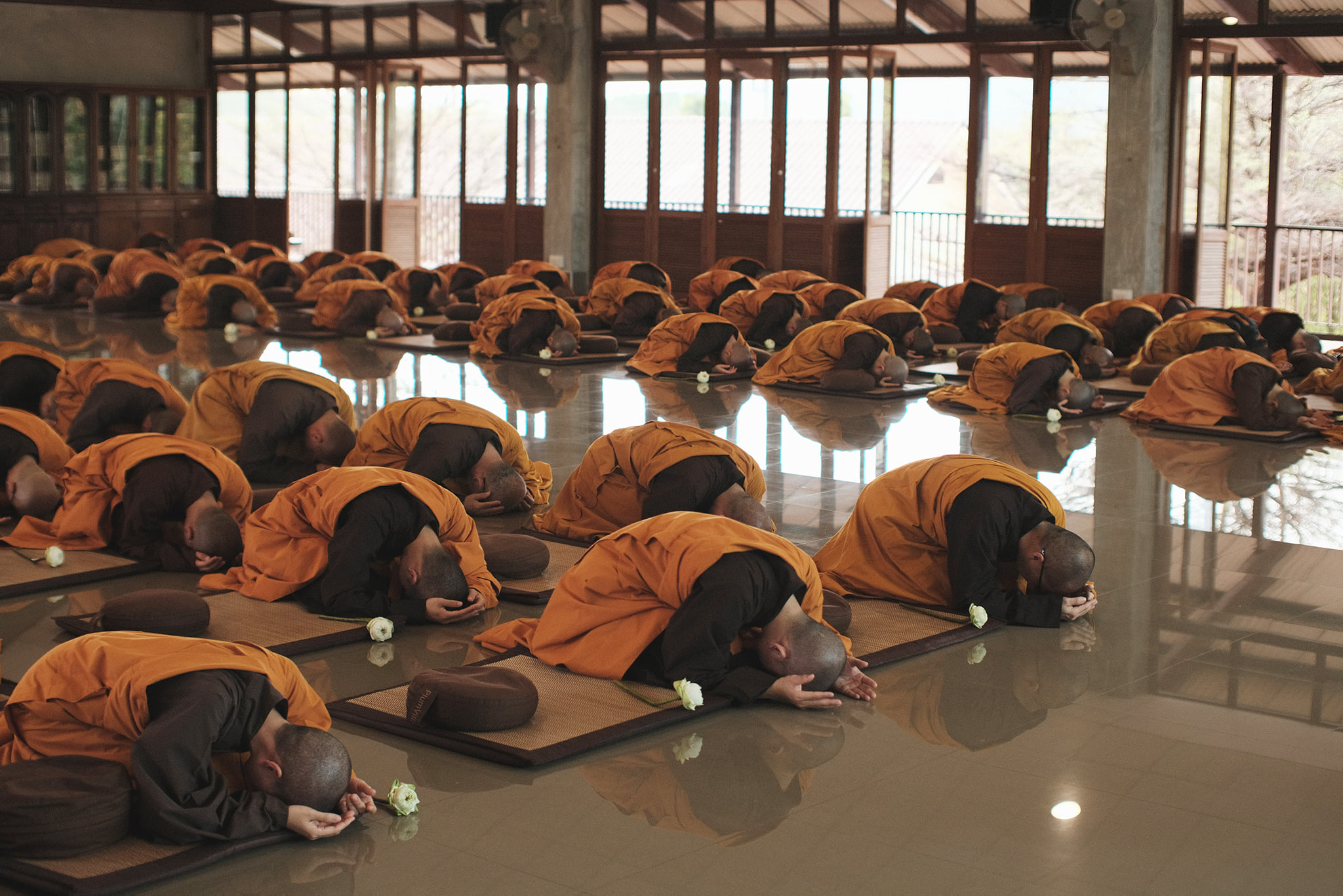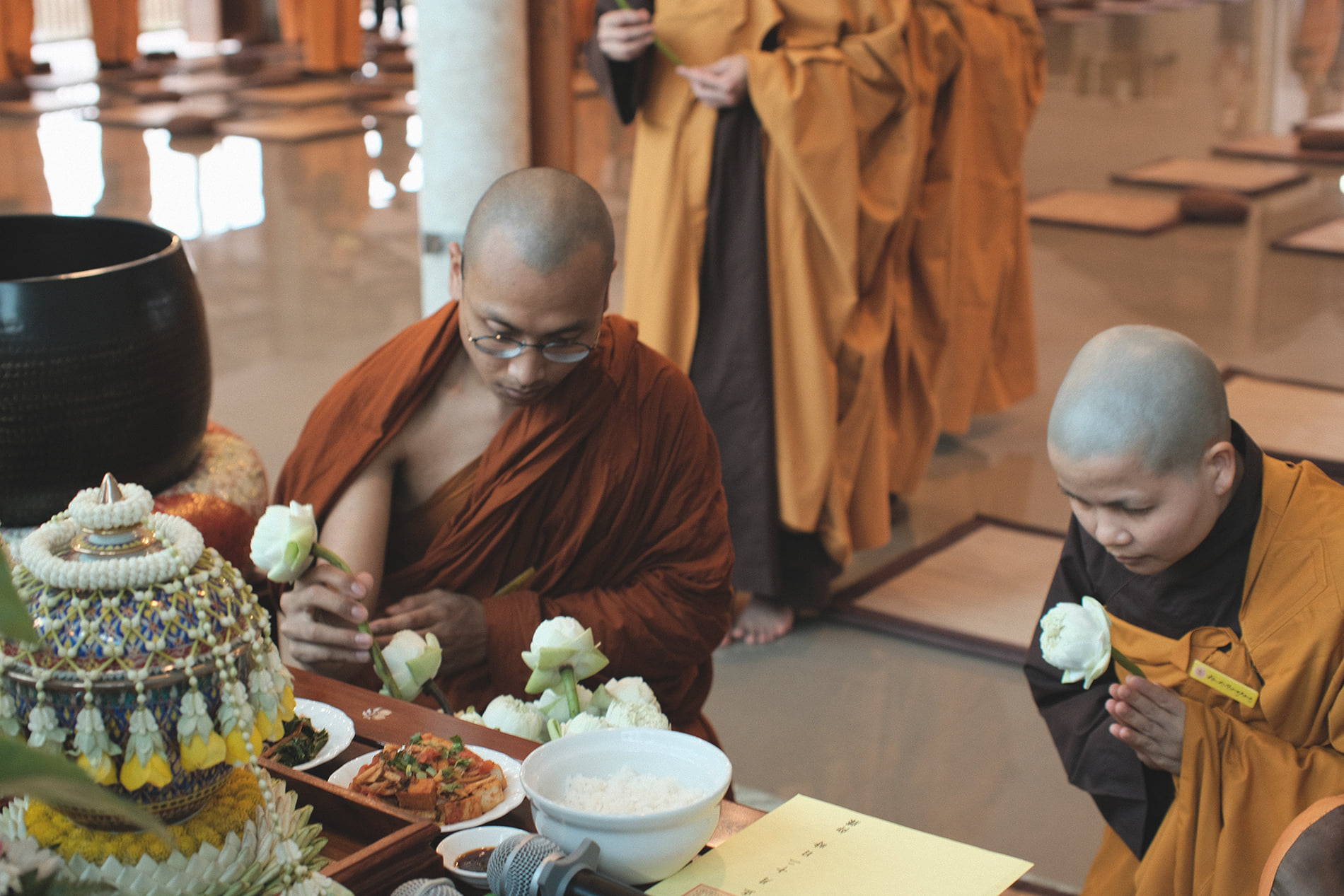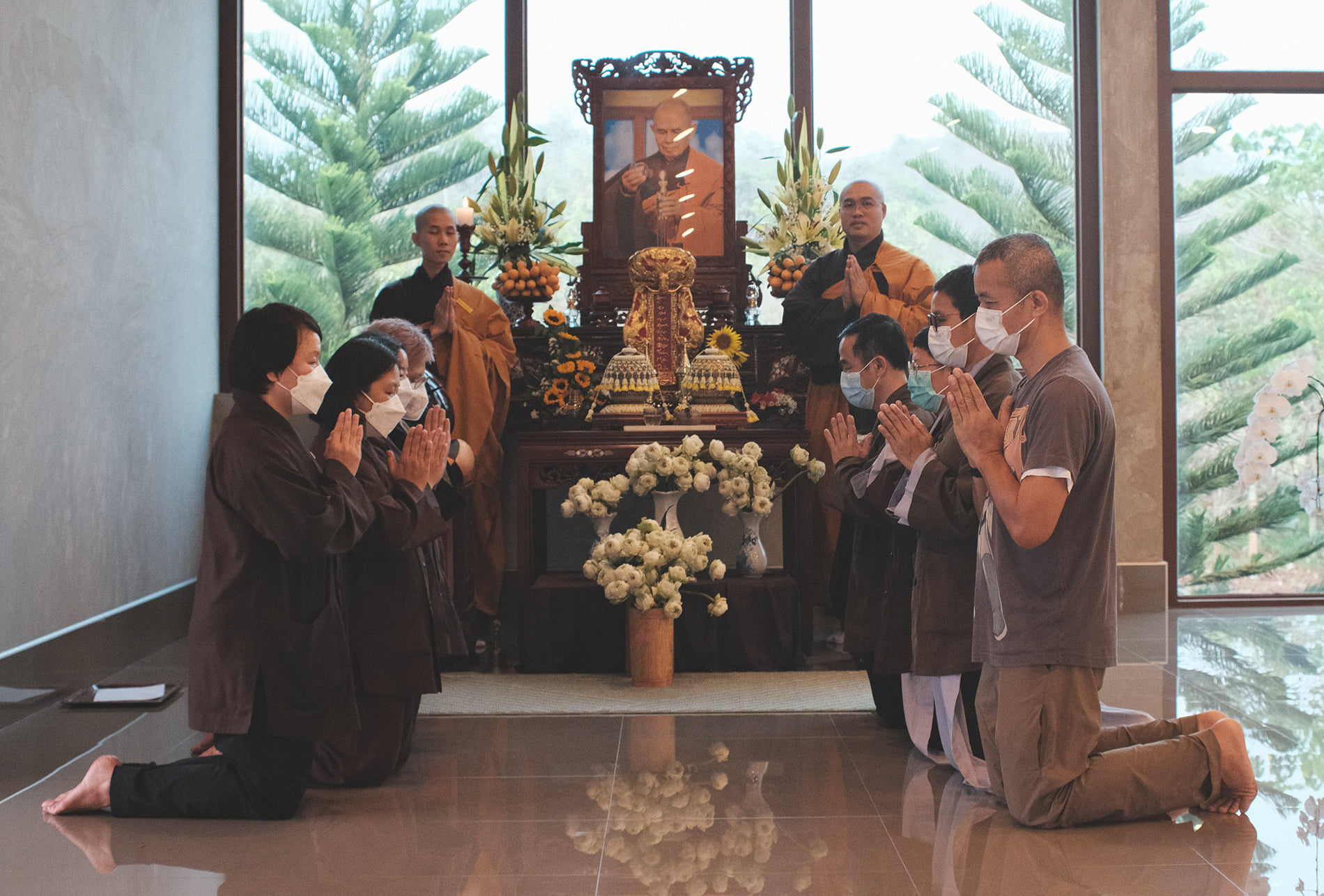 Kết thúc buổi lễ, từng người trong Đại chúng đã tiến lên, dâng hoa cúng dường Sư Ông. Chắc chắn rằng, giây phút này là một giây phút của niềm biết ơn và những lời phát nguyện thực tập sâu sắc. Là con cháu một nhà, là học trò của Sư Ông, Tăng thân xin nguyện thực tập trân quý sự có mặt của nhau, lắng nghe và nâng đỡ nhau, với ý thức sáng tỏ rằng, tình thương là phẩm vật cao quý nhất mà Tăng thân có thể dâng lên cúng dường Sư Ông.