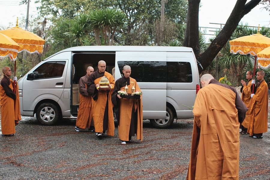 Vào lúc 3 giờ chiều ngày 12/02/2022, Đại chúng Tu viện Vườn Ươm – Làng Mai Thái Lan đã nghinh đón Xá lợi của Sư Ông Làng Mai.