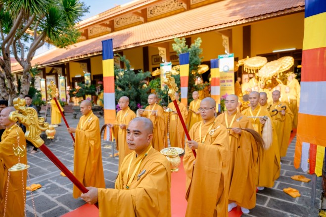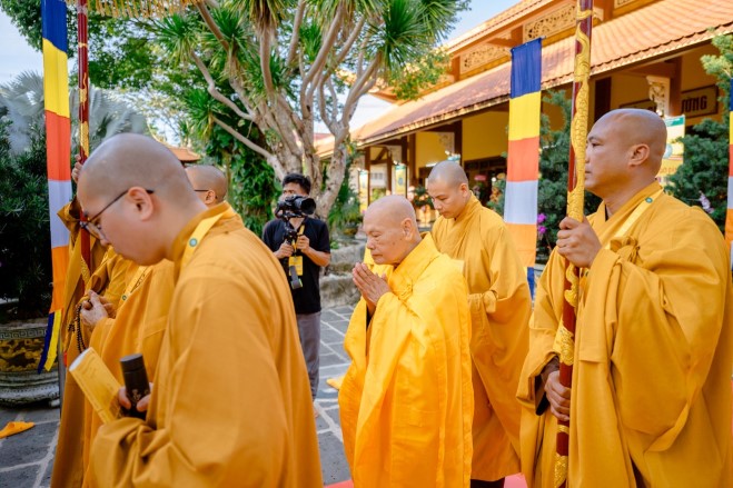 Đàn Tỳ-kheo Ni cung thỉnh Ni trưởng Thích Nữ Như Như – Đường đầu Hòa thượng đàn Tỳ-kheo Ni; Yết-ma A-xà-lê Ni trưởng Thích Nữ Chơn Minh; Giáo thọ A-xà-lê Ni trưởng Thích nữ Như Trí cùng tông chứng sư: Ni trưởng Thích Nữ Đền Liên; Ni trưởng Thích Nữ Như Tri; Ni trưởng Thích Nữ Như Hạnh; Ni trưởng Thích Nữ Như Hương; Ni trưởng Thích Nữ Như Mãn; Ni trưởng Thích Nữ Dung Liên; Ni trưởng Thích Nữ Mẫn Liên. Quang lâm Giới trường, chư giới sư an tọa theo ngôi vị đã được cung an, Ban Điển lễ hướng dẫn giới tử lần lượt cung thỉnh Đường đầu Hòa thượng, Yết-ma A-xà-lê, Giáo thọ A-xà-lê và chư vị Tôn chứng Tăng già theo đúng nghi pháp truyền giới.