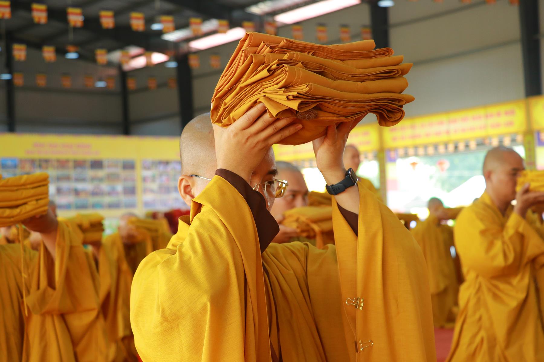 Giới đàn trang nghiêm, chư vị Giới sư thanh tịnh, Giới tử một dạ chí thành ấy chính là nhân tố tất yếu để thành tựu đàn giới, chư Giới tử mong cầu lãnh thọ Giới pháp để chính thức đắc giới thể Tỳ Kheo, đứng vào hàng Tăng bảo trở thành Thích tử Như Lai. Sau khi bạch tứ Yết-ma, Hòa thượng Yết-ma A xà lê hướng dẫn các giới tử xả Mạn y, trao truyền ba y, bình bát, tọa cụ và đãy lọc nước.