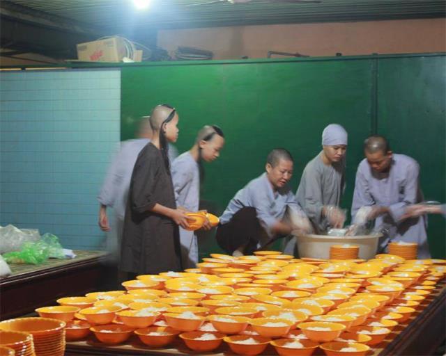Quý thầy cô và Phật tử tại khu vực nhà trù luôn chạy hết công suất, bất kể ngày đêm để đảm bảo thức ăn hợp vệ sinh cho BTC và giới tử.
