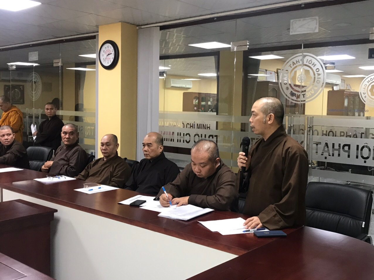 Tiếp đó, TT.Thích Quang Thạnh – Phó Thư ký kiêm Chánh Văn phòng BTS GHPGVN TP.HCM cho biết thêm thông tin về việc bố trí phòng liêu, nơi vệ sinh cá nhân của giới tử trong khuôn viên Giới trường. Tất cả các khâu hiện đã chuẩn bị hoàn tất.