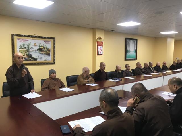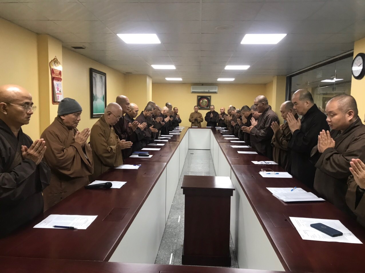 Phiên họp có sự hiện điện của chư tôn đức Thư ký BTS GHPGVN TP.HCM, chư tôn đức Thành viên Ban Quản giới tử Đại Giới đàn Huệ Hưng.