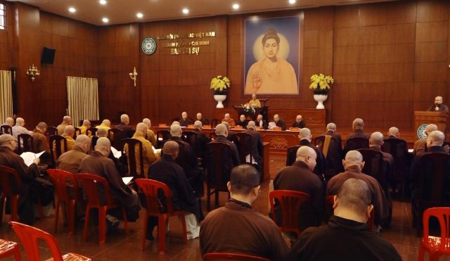 Phiên họp do Đức Trưởng lão HT.Thích Trí Quảng – Phó Pháp chủ kiêm Giám luật HĐCM, Trưởng BTS GHPGVN TP.HCM chủ trì, cùng với sự tham dự của chư tôn đức lãnh đạo Phật giáo TP, các ban chuyên ngành trực thuộc, BTS Phật giáo 24 quận, huyện.