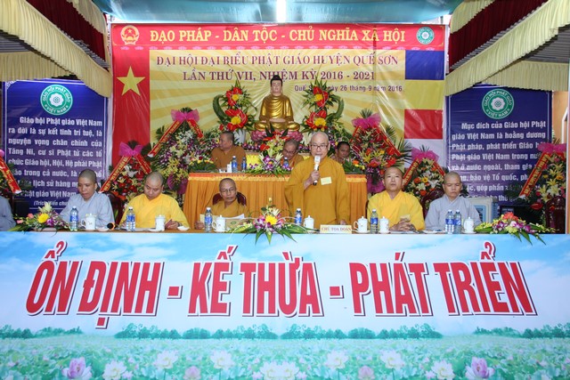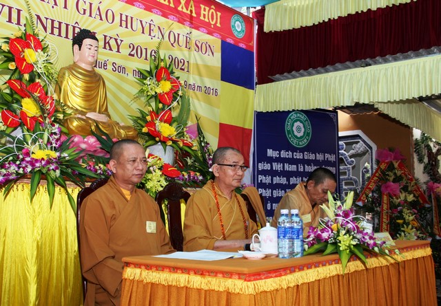 Phát biểu khai mạc, ĐĐ.Thích Đồng An, Trưởng BTS GHPGVN huyện Quế Sơn cho biết, nhiệm kỳ qua, dù gặp nhiều khó khăn với những lý do khách quan, chủ quan nhưng toàn thể Tăng Ni, Phật tử Quế Sơn đã cố gắng hoàn thành các công tác Phật sự mà Giáo hội giao phó.