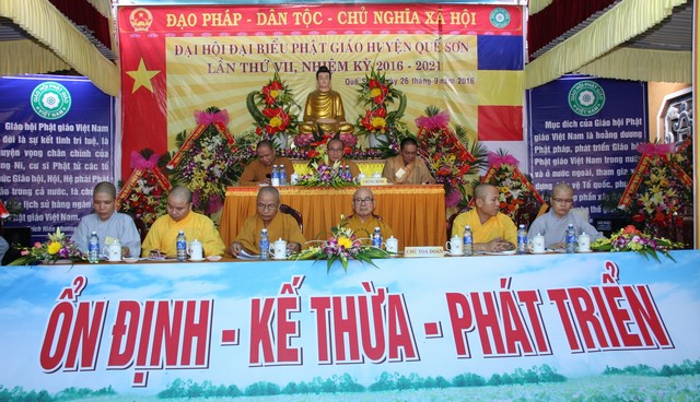Báo cáo những hoạt động Phật sự trong nhiệm kỳ qua và phương hướng hoạt động của nhiệm kỳ 2016 – 2021 do SC.Thích nữ Huệ Phát, Phó ban kiêm thư ký BTS PG huyện Quế Sơn trình bày, cho biết, huyện Quế Sơn có 22 ngôi chùa, trong đó có 1 cơ sở (chùa Thạnh Bình) được tái sinh hoạt trực thuộc Giáo hội vào năm 2015; Toàn huyện có tổng số Tăng Ni và Điệu chúng là 57 vị (trong đó 15 vị Tỷ kheo, 11 vị Tỷ kheo ni, 06 vị Thức xoa ma na, 03 vị Sa di, 04 vị Sa di ni và 18 vị Điệu chúng).