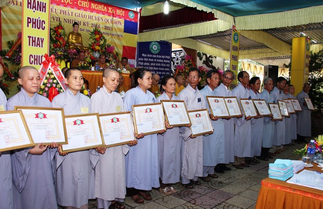 Dịp này, Ban Trị sự GHPGVN tỉnh Quảng Nam cũng đã trao bằng tuyên dương công đức đến BTS GHPGVN huyện Quế Sơn và các cá nhân có đóng góp tích cực cho Giáo hội. Ngoài ra, các cá nhân cũng nhận bằng tuyên dương công đức của Giáo hội huyện nhà.