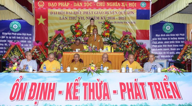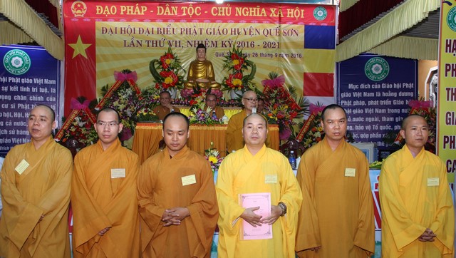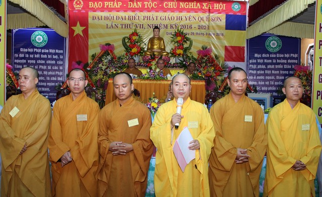 Sau khi BTS PG huyện nhiệm kỳ VI tuyên bố mãn nhiệm, ĐĐ.Thích Đồng An đã trình Đại hội về nhân sự mới; ĐĐ.Thích Giải Quảng đã thay mặt Thường trực BTS PG tỉnh Quảng Nam lấy ý kiến của Đại biểu về thành phần nhân sự nhiệm kỳ VII, toàn thể đại biểu đã biểu quyết thông qua danh sách tân Ban Trị sự GHPGVN huyện Quế Sơn nhiệm kỳ (2016-2021) với 26 thành viên, suy cử ĐĐ.Thích Đồng An tiếp tục đảm nhiệm chức vụ Trưởng ban, ĐĐ.Thích Đồng Mãn, ĐĐ.Thích Bảo Tuyền đồng Phó ban; SC.Thích nữ Huệ Pháp làm Phó ban kiêm Thư ký và các ủy viên phụ trách các ban của Giáo hội huyện.