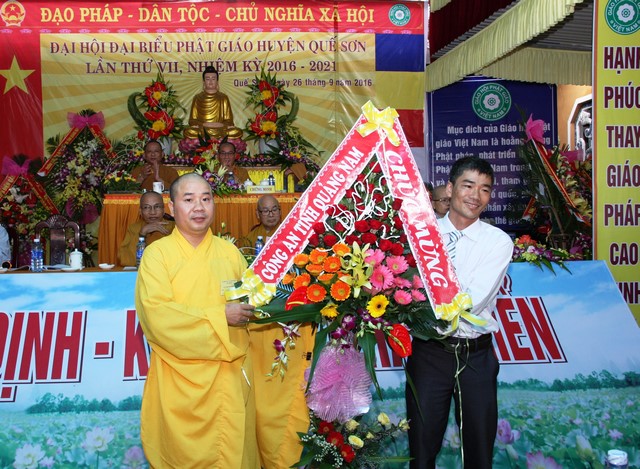 Đại diện chính quyền, ông Lý Tuân Phong, Chủ tịch UBMTTQVN huyện Quế Sơn, phát biểu ghi nhận những đóng góp của Phật giáo Quế Sơn và hy vọng tân BTS GHPGVN huyện Quế Sơn sẽ tiếp tục phát huy hơn nữa để hoàn thành tốt công tác Phật sự, cùng góp phần xây dựng quê hương Quảng Nam ngày càng giàu mạnh.