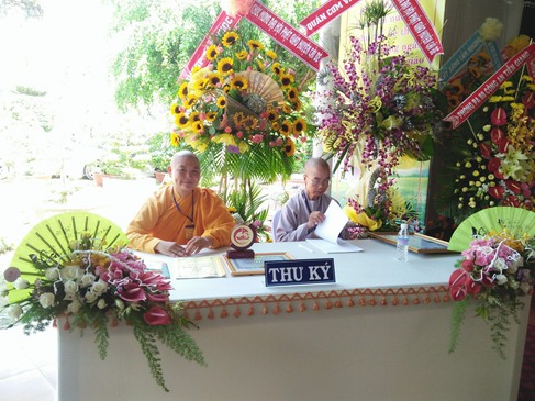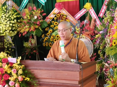 HT. Thượng Huệ Hạ Minh  – Trưởng Ban Trị Sự GHPGVN tỉnh Tiền Giang thay mặt BTS phát biểu ý kiến về thành phần nhân sự nhiệm kỳ 2016-2021 và lấy biểu quyết chung của toàn thể đại biểu, thống nhất suy cử danh sách nhân sự gồm Ban chứng minh, Ban Trị sự, Ban Tài chánh…