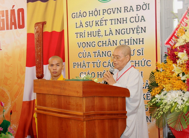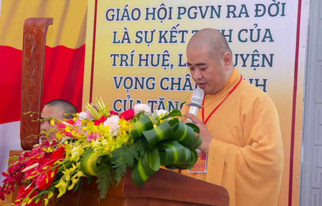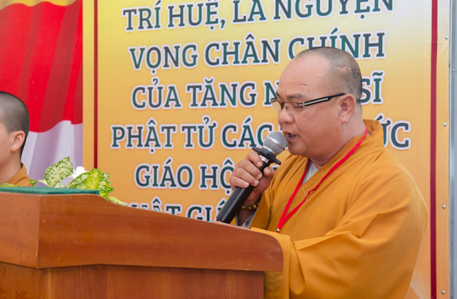 HT. Thích Thiện Lạc, Trưởng BTS GHPGVN huyện Bình Chánh, Trưởng Ban tổ chức Đại hội Phát biểu khai mạc