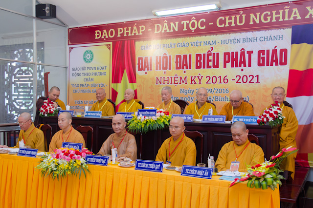 Chủ tọa đoàn có; HT. Thích Thiện Lạc, Trưởng Ban BTS GHPGVN H. Bình Chánh, Trưởng BTC Đại hội, TT. Thích Thiện Qúy, Chánh Thư ký, TT. Thích Quang Thạnh – Phó thư ký kiêm Chánh Văn phòng BTS, ĐĐ. TT. Thích Hiển Đức, Văn phòng BTS GHPGVN TP.HCM, TT. Thích Nhật Ấn, Trưởng BTS GHPGVN Q. Bình Tân cùng chư tôn đức Đại diện cho Ban Trị sự Phật giáo các quận – huyện bạn, chư tôn đức Tăng Ni trụ trì các tự viện và Phật tử các đạo tràng của các tự viện trong H. Bình Chánh đã đến chứng minh và tham dự.